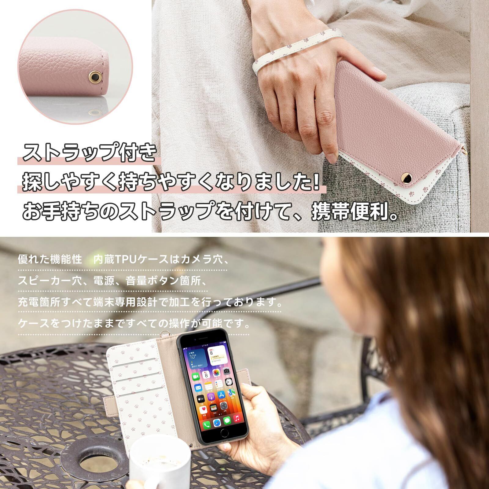 for iPhone 8 ケース 手帳型 iPhone SE3/SE2 ケース 可愛い 猫 足跡 iPhone 7 カバー 女性 マグネット式 iPhone SE ケース 第2/3世代 カード入れ収納 横置きスタンド アイフォン se2 スマホカバー PUレザー 外側ポケット シンプル 大人人気 4.7インチ (ピンク) | lcsshop