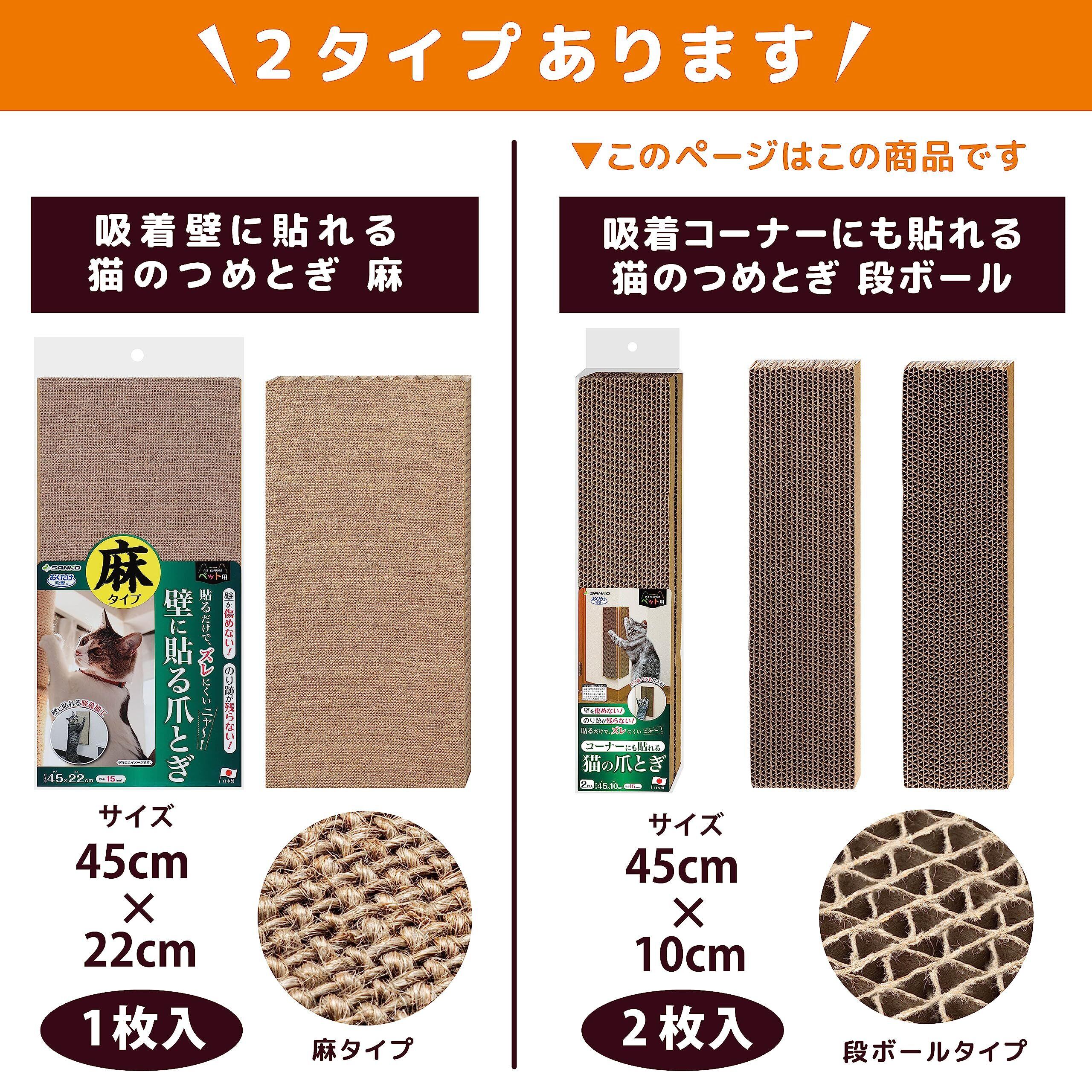 サンコー 吸着 コーナーにも貼れる 猫のつめとぎ 段ボール KX-61 45×10cm 2個入 壁傷 防止 貼りなおせる ネコ