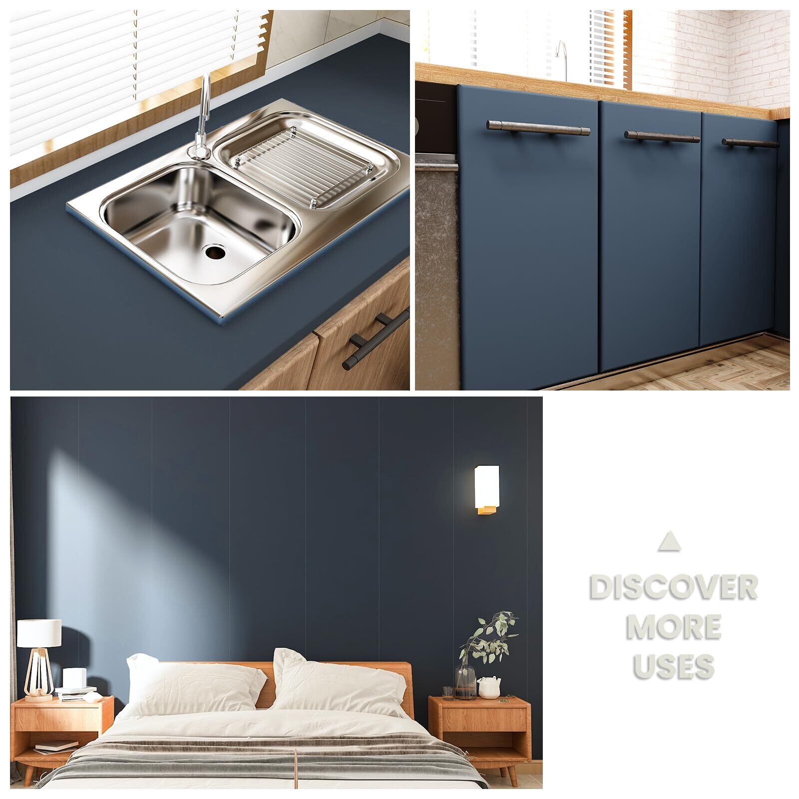 【手触りが快適】マットダークブルーのリメイクシートは高品質のビニール製で、表面がアップダークブルードされ、手触りが快適で心地が良いです