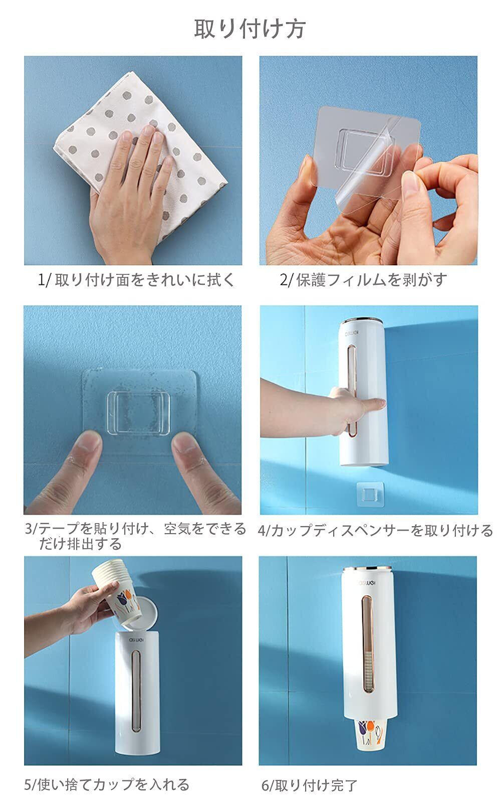 【カップを汚れから守る】カップディスペンサーの上に上フタが付いているのでカップを汚れ、ホコリなどから守り、いつも纸カップを清潔に保つことができます。高品質のABS素材を使用していますので、耐久性にも優れています。紙コップの他、プラスチックカップなど使い捨てコップにも対応できます。