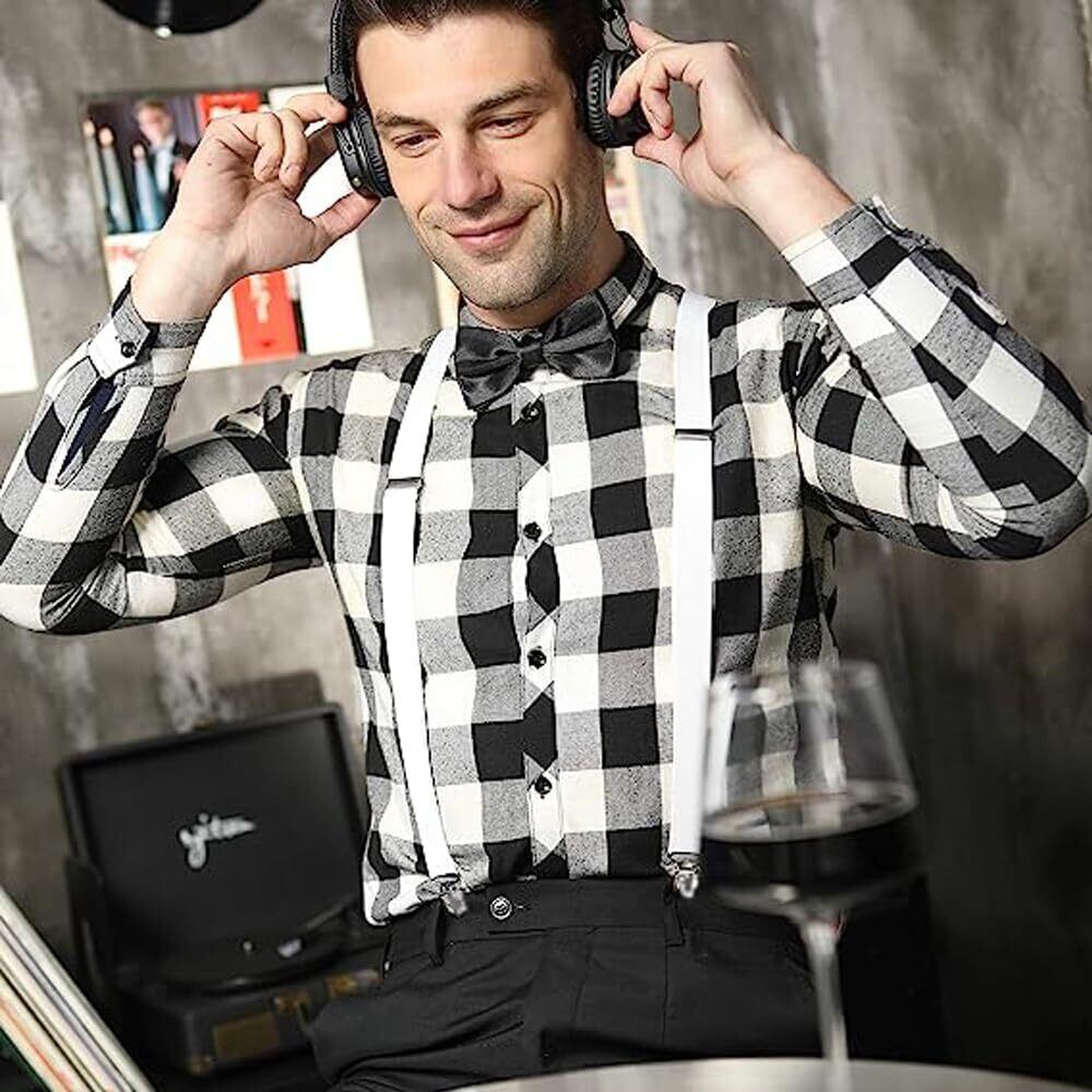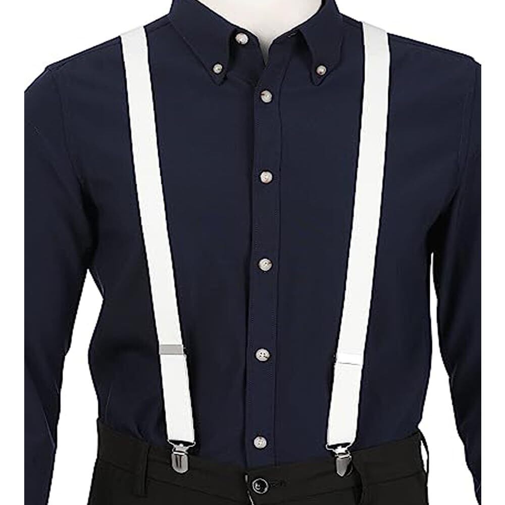 [YFFSFDC] サスペンダー メンズ Y型 幅35mm 男女兼用 3クリップ フォーマル 本革 しっかりとホールド 弾性 調節可能 吊りバンド