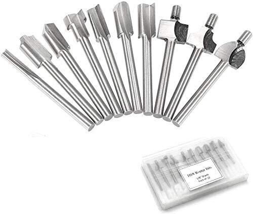 全長:36mm。シャンク径:3.2mm、1/8''。1セット10個で、様々なタイプのトリマービット、溝削りなどに適しています。