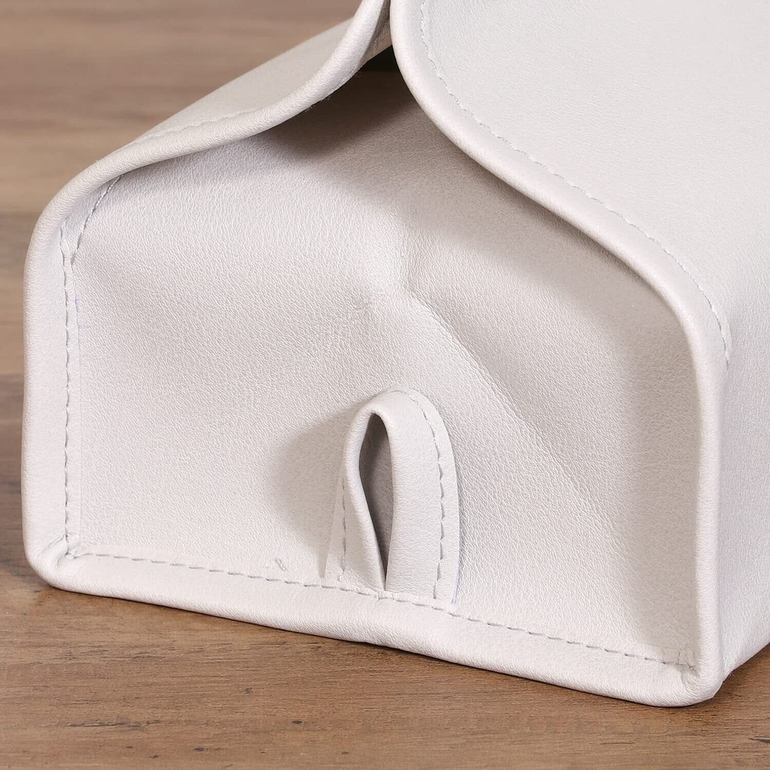 レザー調の素材と金色のボタンを使用した高級感のあるティッシュケース。