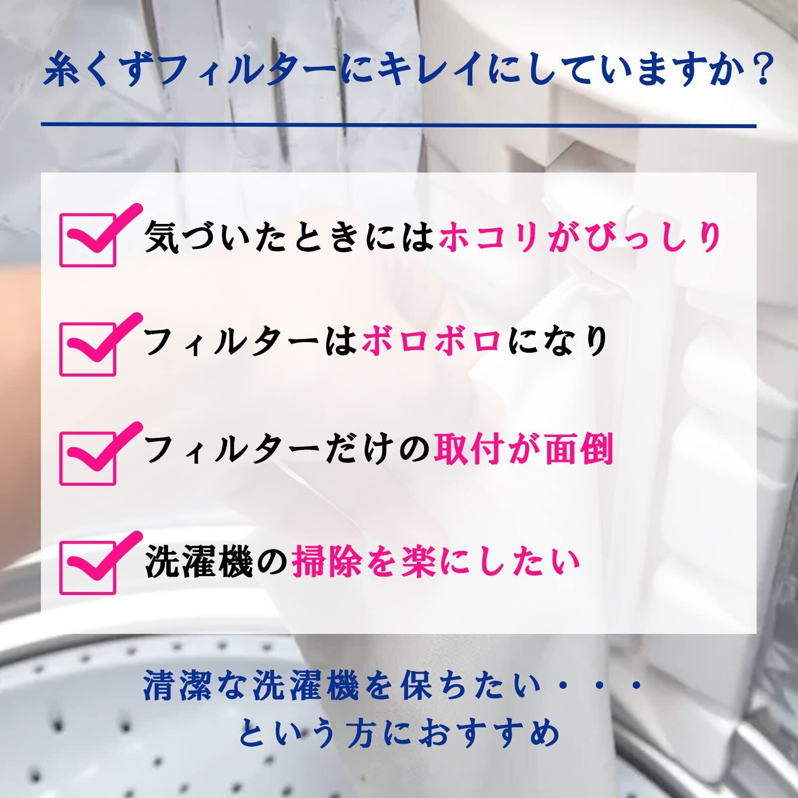 『特徴』 ① 【高品質素材】耐久性のあるマイクロファイバー素材で作られており、長期間の使用にも耐えられます。 ② 【効果的なフィルタリング】 糸くずや髪の毛、ペットの毛などを効果的にキャッチし、洗濯物を清潔に保ちます。 ③ 【洗濯機寿命延長】 フィルターが糸くずやゴミをキャッチすることで、洗濯機のドラムや排水口への負担を軽減し、寿命を延ばします。 ④ 【環境に優しい】繰り返し使用できるため、使い捨てフィルターよりも環境に優しい選択です。