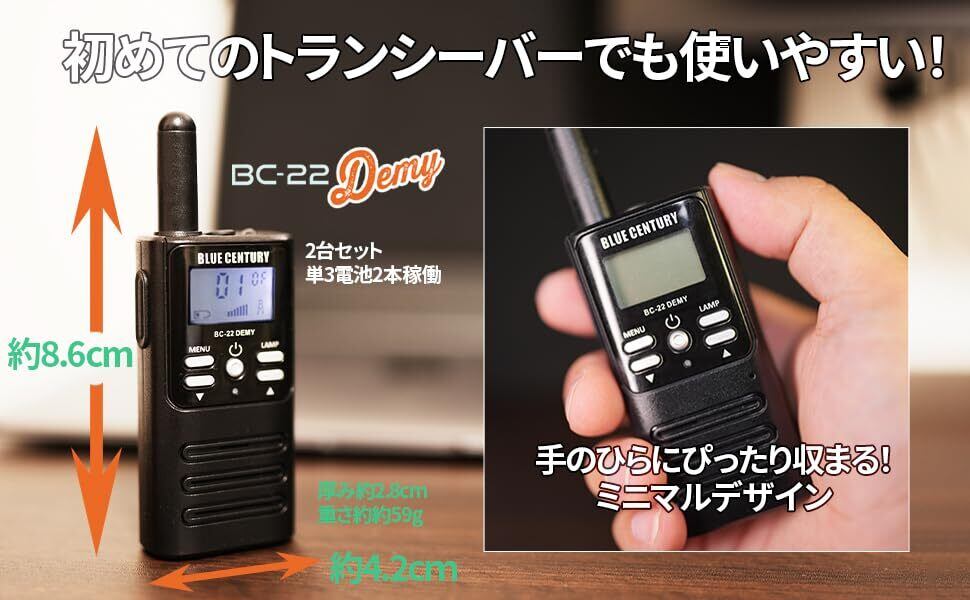 BLUE CENTURY ブルーセンチュリー 国内メーカー 小型 特定小電力 トランシーバー BC-22DEMY (デミ) ストラップ/ベルトクリップ付属 単三電池2個モデル 総務省技術基準適合商品 技適マーク有 (本体2台セット)