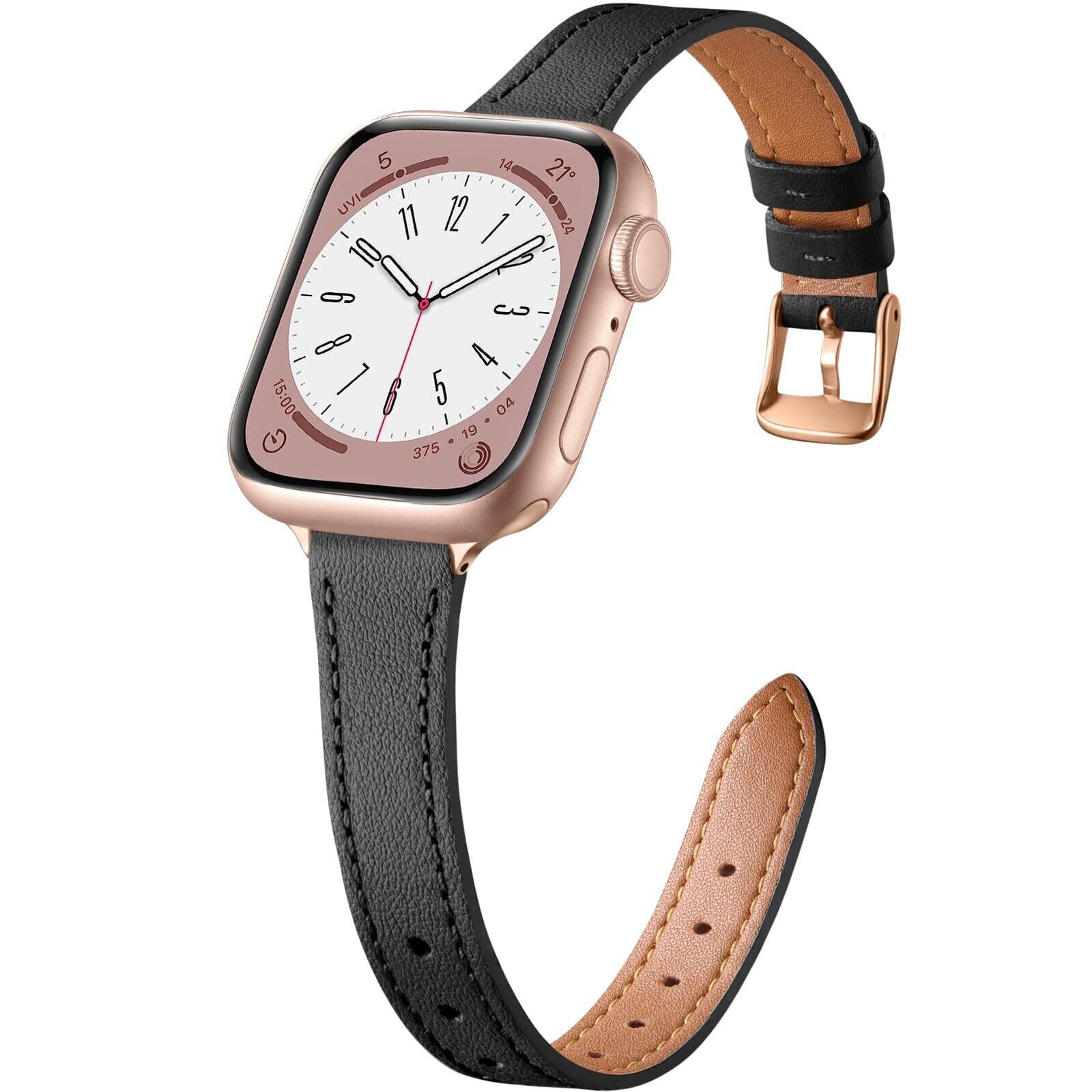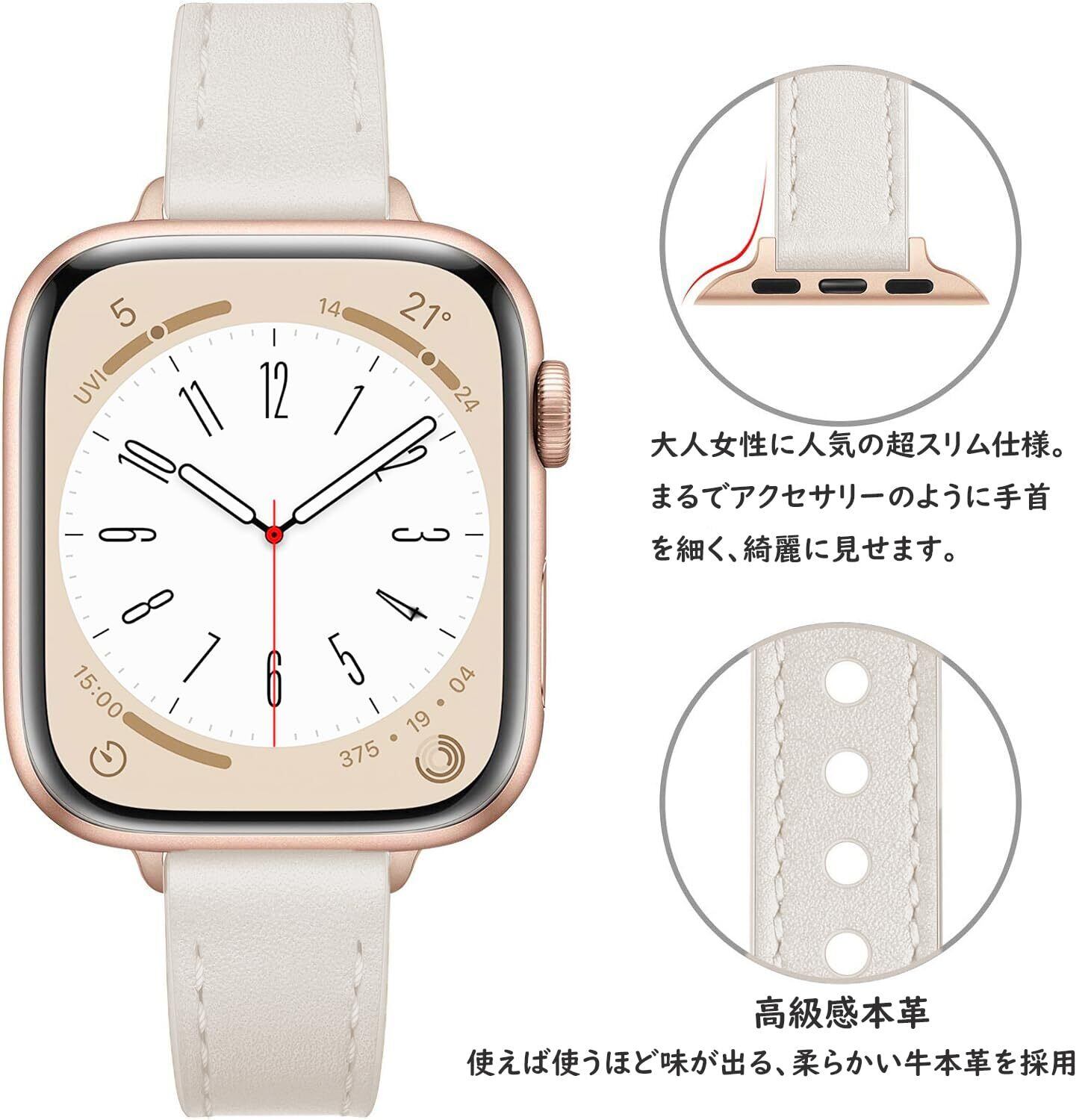 コンパチブル Apple Watch バンド 本革 レディース スリム アップルウォッチ バンドSeries 10/9/8/7/6/5/4/3/2/1/SE レザー 交換ベルト 細い 柔らかい おしゃれ 可愛い iWatch 38mm 40mm 41mm 42mm 44mm 45mm 46mmに対応(ブラック、46/45/44/42mm(series 3))