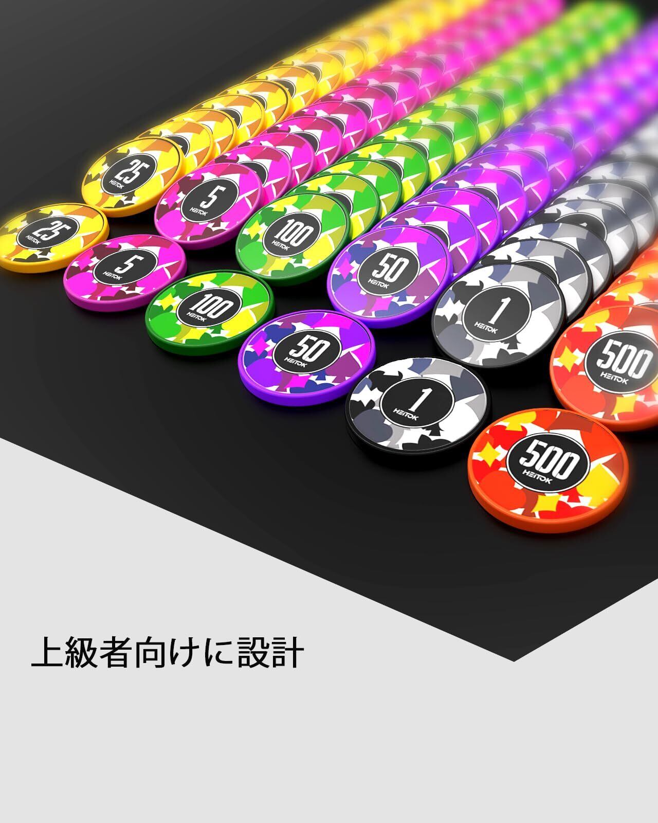 HEITOK ポーカーチップ ポーカーセット 300枚 数字入り 11.5g カジノチップ トランプ2組とサイコロ5個が付属 ABS製チップ アルミ製スーツケース入り