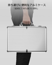 アルミケースのサイズと重量:手提げ用のアルミ製ケースで、丈夫なアルミ素材を使用。長時間の使用にも耐える強度を確保し、耐久性と携帯性を大幅に高めています。ケースのサイズは長さ44cm、幅27.4cm、高さ8.3cmで、重量は4.7kgです