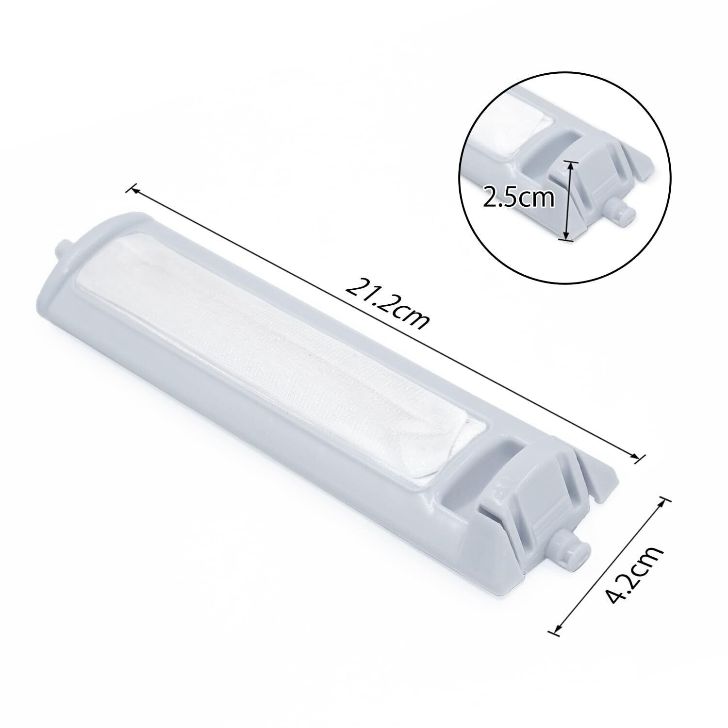 (商品仕様) 糸くずフィルター、2個セットで販売。サイズ:約21.2*4.2cm、材質:プラスチック+ナイロン網