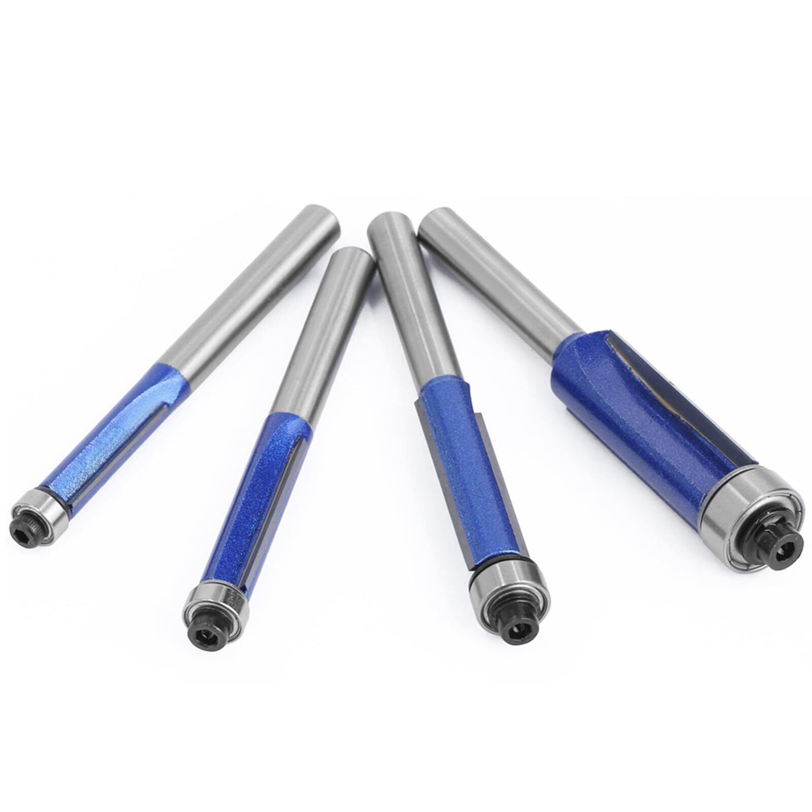Bestgle 4本組 超硬トリマルータービット ベアリング ほぞカッター 2刃切断ルータービット 6.35mmシャンク超硬刃ルータービットCNC彫刻機&フライス旋盤工具用トリマー ビット 電動トリマー用ビット 工業用品質ルータービット ブルー | lcsshop