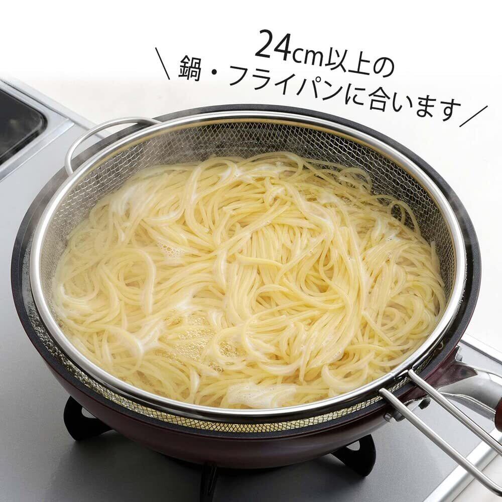 下村企販 フライパンにセットできる ゆでざる 深型24cm 【日本製】 食洗機対応 野菜・麺類を一度に湯切り 水切り 持ち手付き ゆで料理 枝豆 便利でごザル ステンレス 燕三条 41580 | lcsshop