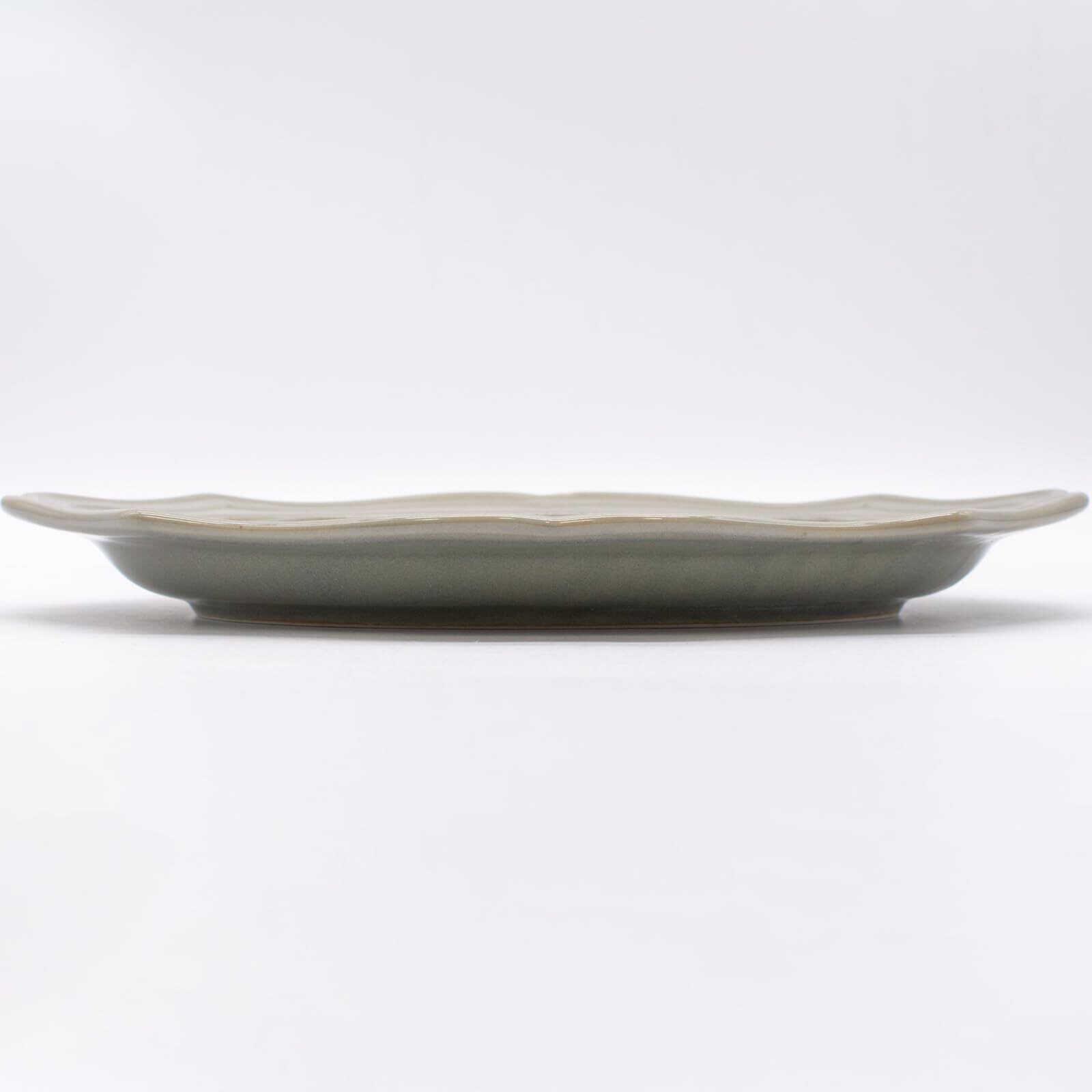 美濃焼 「 cadre 」 楕円 オーバル 皿 プレート レリーフ模様 直径約25×18cm グレー 一洋陶苑 カードル 電子レンジ 食洗機対応 日本製 513-0124