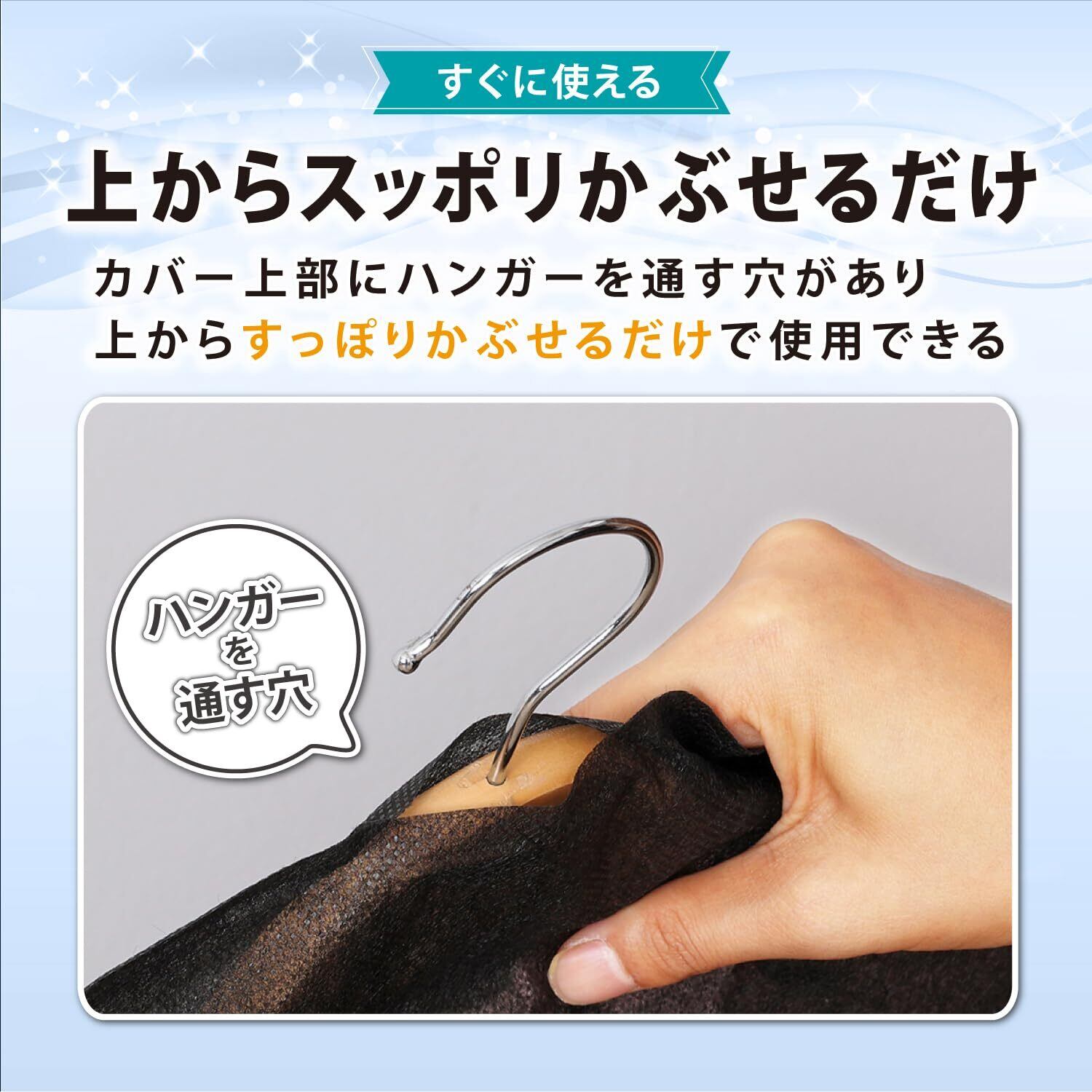 ●カバーを掛けておくことで保管中に洋服同士が擦れず、毛玉の発生や傷みを防げる。