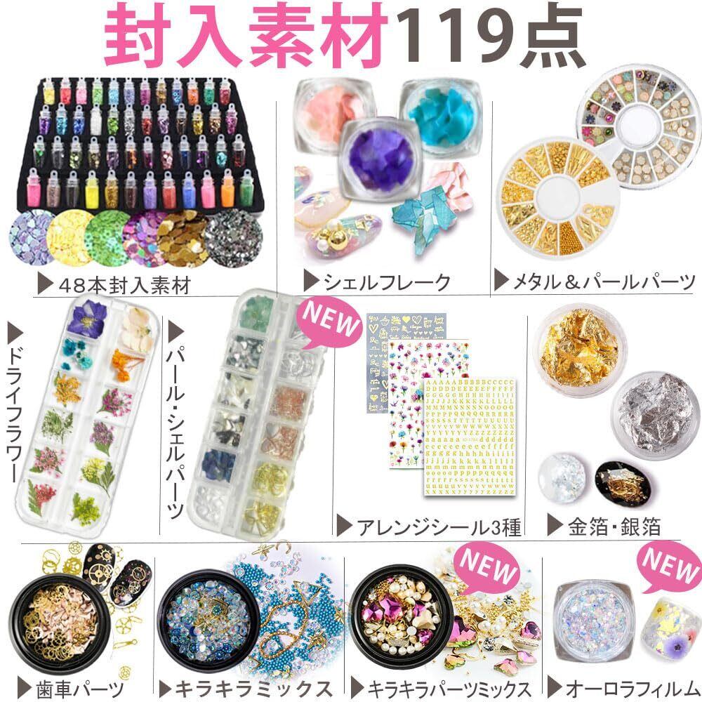 付属コンポーネント [部分的] レジン液, 着色料, アクセサリーパーツ, ライト, シリコンモールド, トップコート, ベースコート, ネイルツール 等