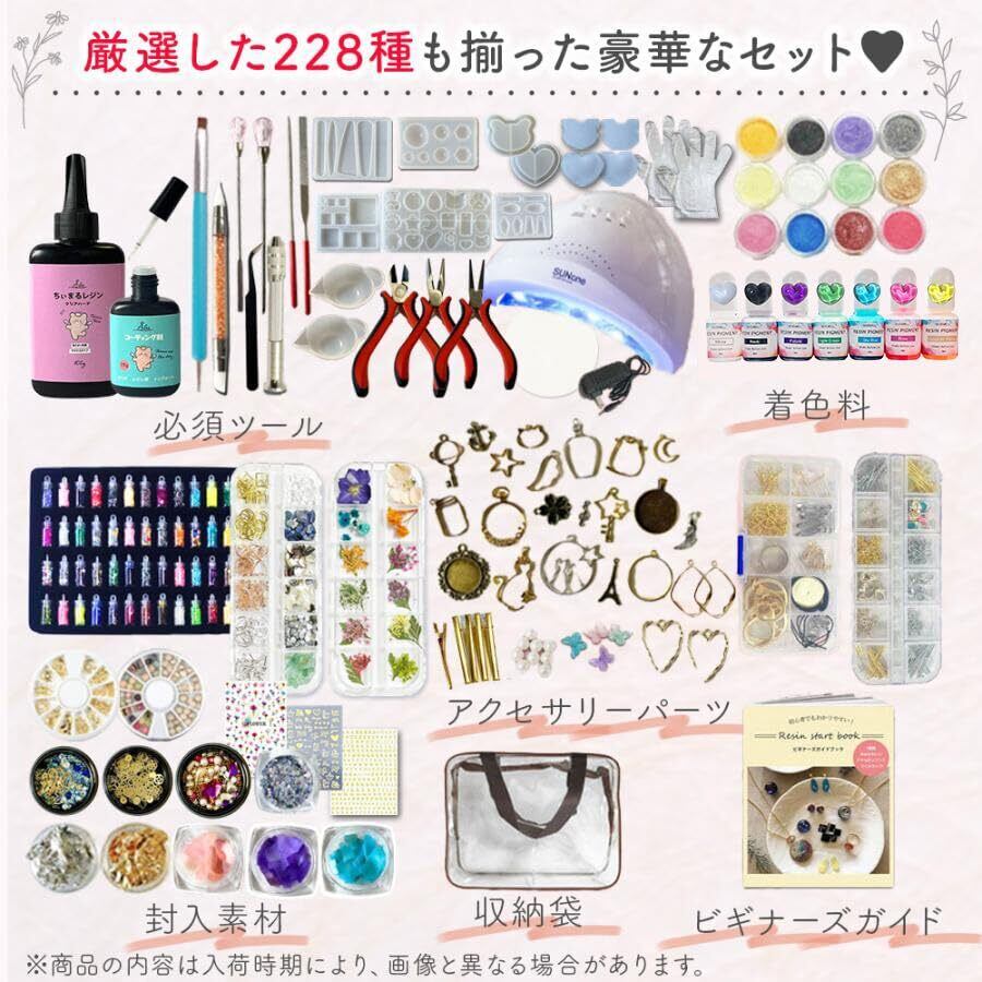 [Ailes(エール)]UV レジン スターターキット セット 初心者 【豪華228種類】 レジン液 着色料 アクセサリーパーツ (48WライトAセット)