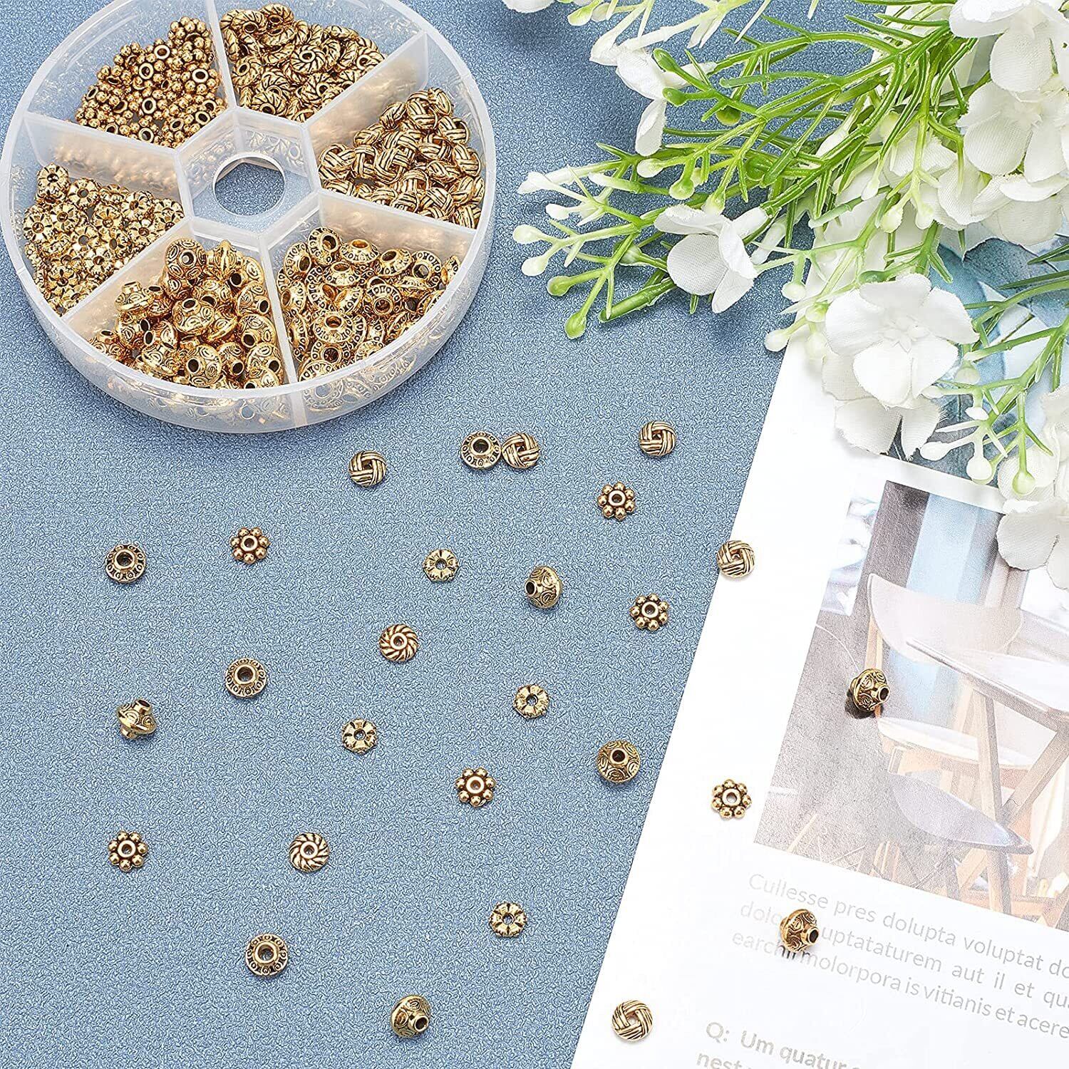 PH PandaHall 約300個/箱 金色 花型 座金 ビーズキャップ 透かしキャップ フラワー チャーム 菊座 花座 スペーサービーズ アクセサリーパーツ チベット ロンデル 花状 レジン封入 ジュエリー用 アンティーク