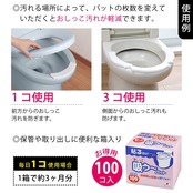 トイレの汚れ防止パット100個入り。おしっこの飛び散りや垂れを防ぎ、床を汚しません。