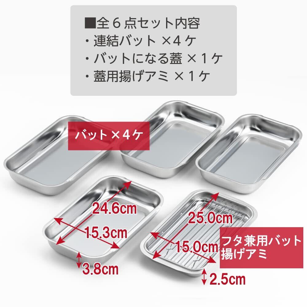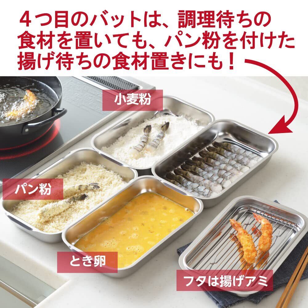 ヨシカワ バット 6点 セット 下ごしらえ 日本製 ステンレス フタ付き アミ付き 揚げ物 天ぷら 料理 トレイ トレー 1216026