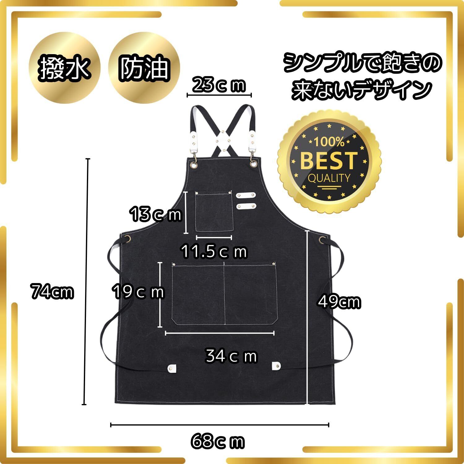 【大きめのポケット付き】ペンやメモ帳、スマホ、タブレットなどを収納可能な大きめのポケットが付いています。また、ハサミ、ペンチ、工具などを入れても破れにくく、様々なシーンで活躍します。【カジュアルで機能的なデザイン】料理教室やアウトドアキャンプシーンにも映える、カジュアルで機能的なデザインを採用しています。男性はカッコよく、女性は可愛らしく、コーデに合わせられます。