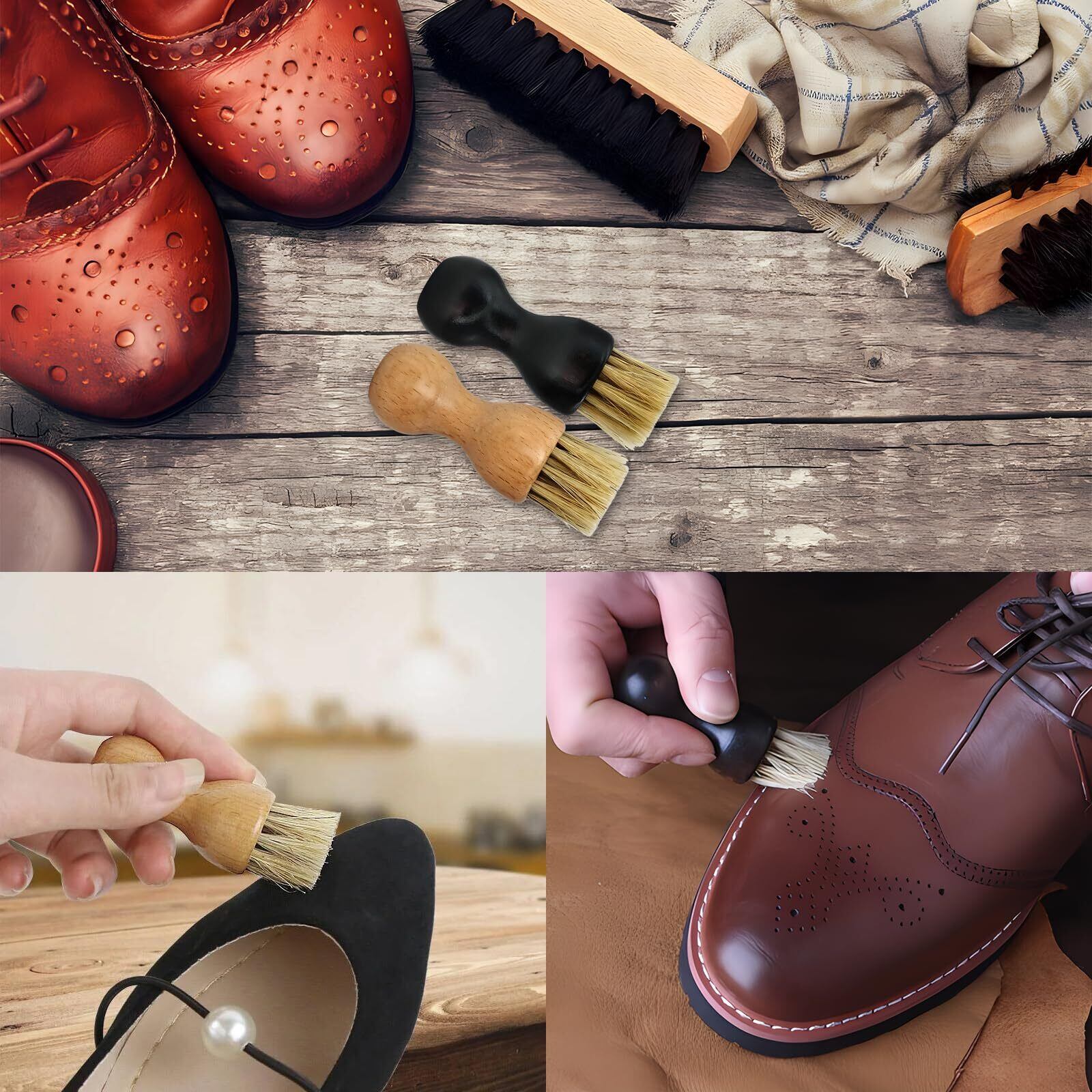 Liroyal 靴磨き ブラシ 靴クリーム塗布用ブラシ 2個入り シューケア 豚毛ブラシ 靴のお手入れ 良質毛ブラシ 靴磨きブラシ 小型 軽量 手を汚さない ハンドルミニブラシ