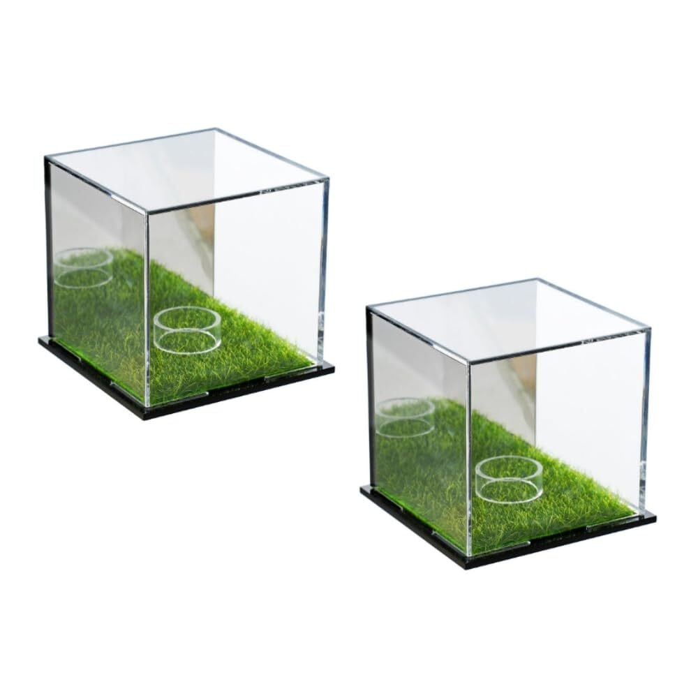 GYWHOOFT 2個セット サインボールケース 野球 人工芝 ミラー付き野球ボールケース サインボールケース ミラー付き 芝生付き 野球用 アクリル製 ディスプレイケース 保護 展示 防塵 四角型 コレクションケース 透明ケース | lcsshop