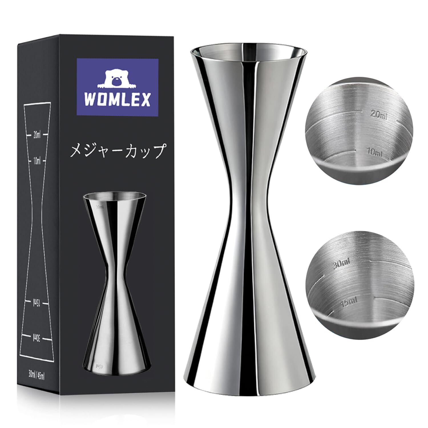 [WOMLEX]のメジャーカップは、カクテルやウイスキーの計量に最適なアイテムです。30mlと45mlの目盛りが付いているダブルヘッドデザインにより、どんなレシピにも対応でき、バーテンダーのようなプロフェッショナルな仕上がりを実現します。