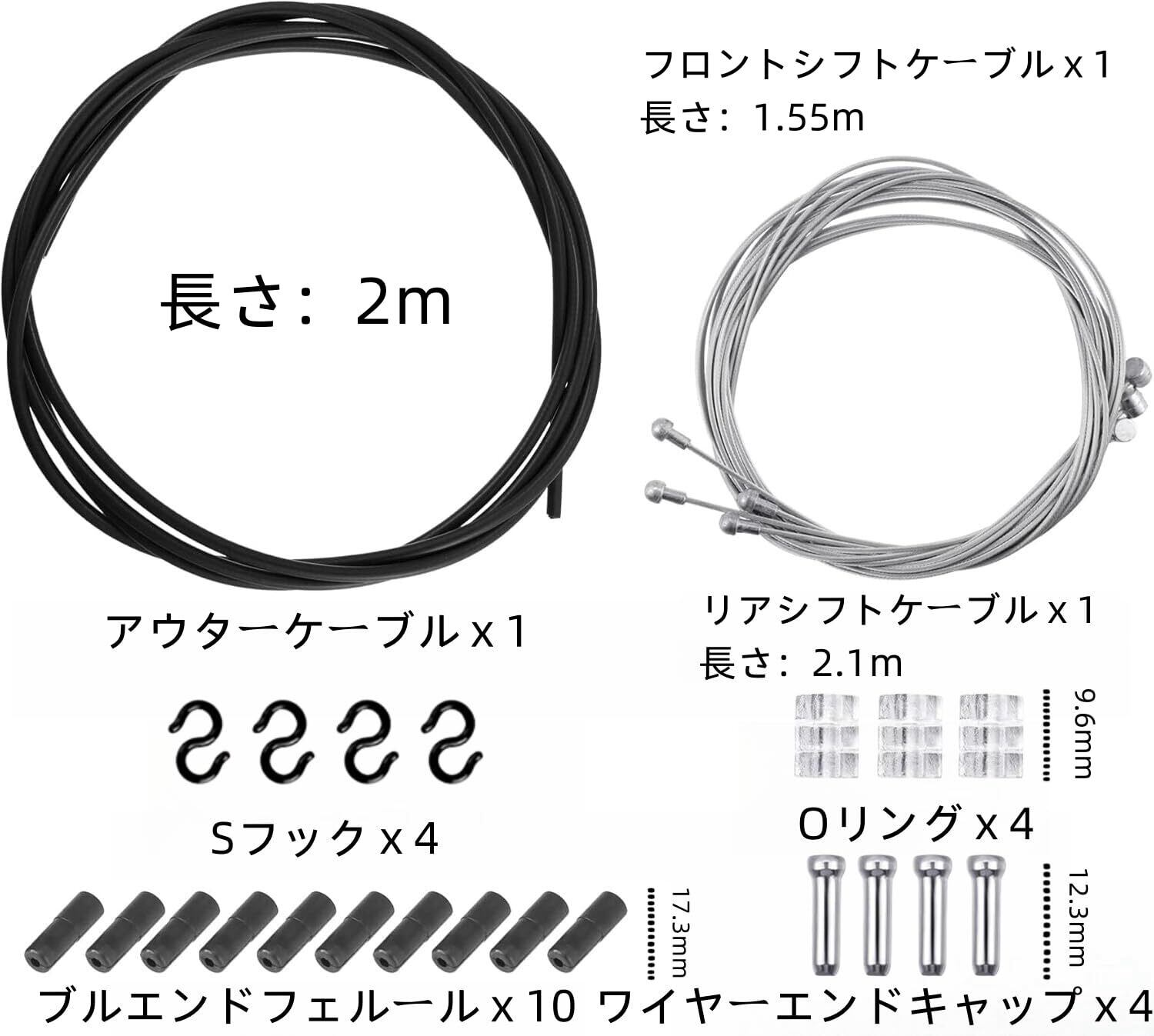 【商品仕様】サイズ:アウターケーブル:長さ2m/直径4mm、シフトケーブル:長さ1.55m(フロント)/2.1m(リア)