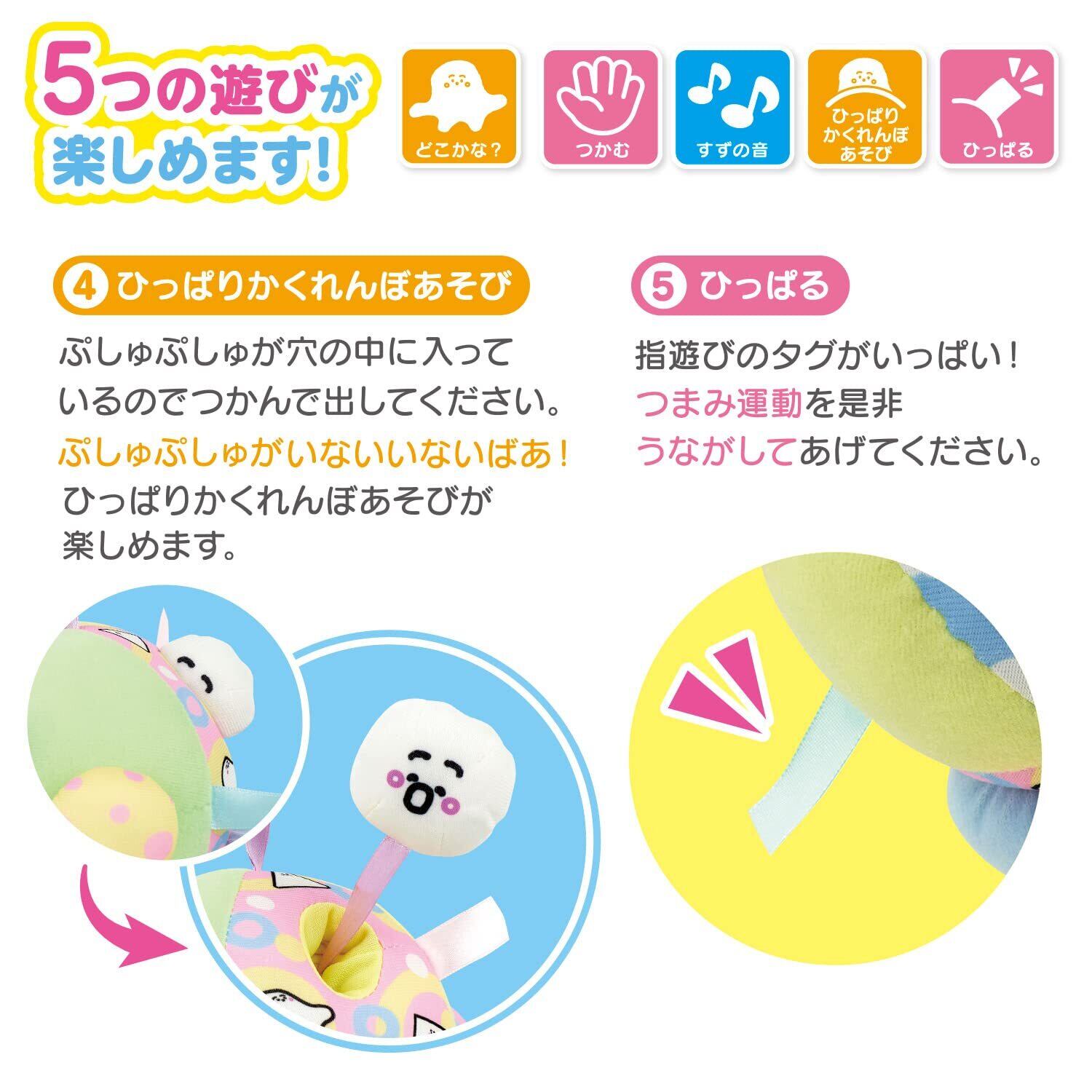ポコポコの突起がお子様の指先運動にも最適シナぷしゅを引き出すことで、ひっぱりかくれんぼ遊びも楽しめる仕様でボリューム感満点!